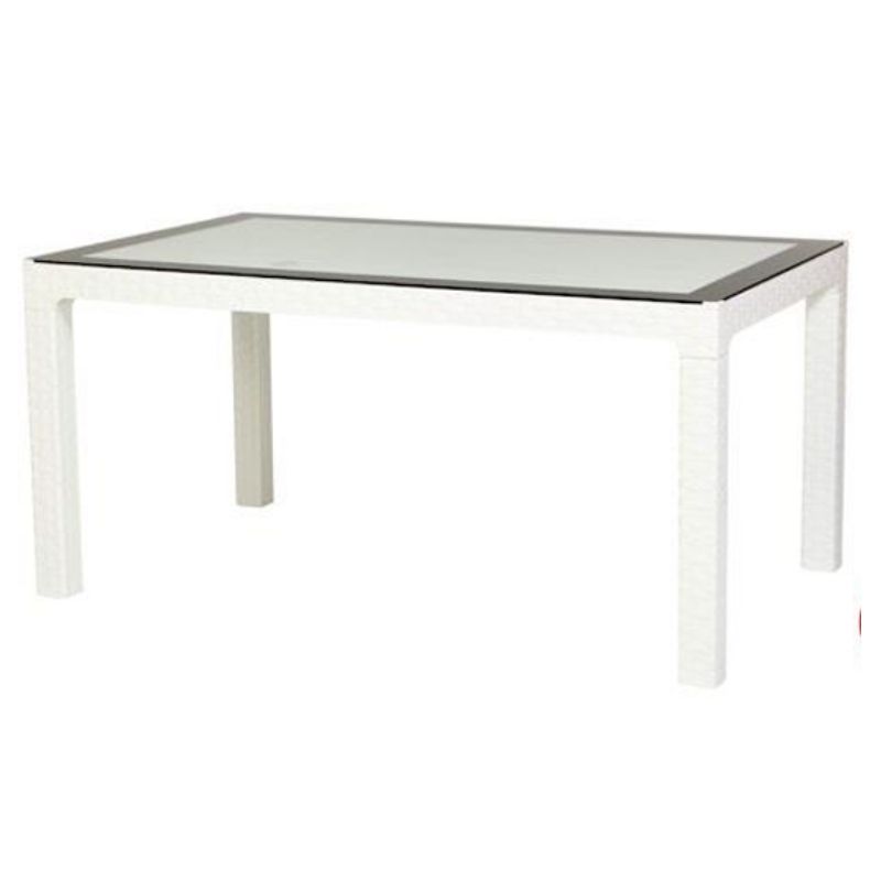 La mesa Arizona 90×150 Wide con vidrio está fabricada en polipropileno con diseño de madera. La superficie de la mesa es de vidrio templado de 6 mm y es fácil de limpiar. Las patas son desmontables y vienen en la caja. El montaje es sencillo y no requiere herramientas, siendo apta para uso tanto en interiores como en exteriores.