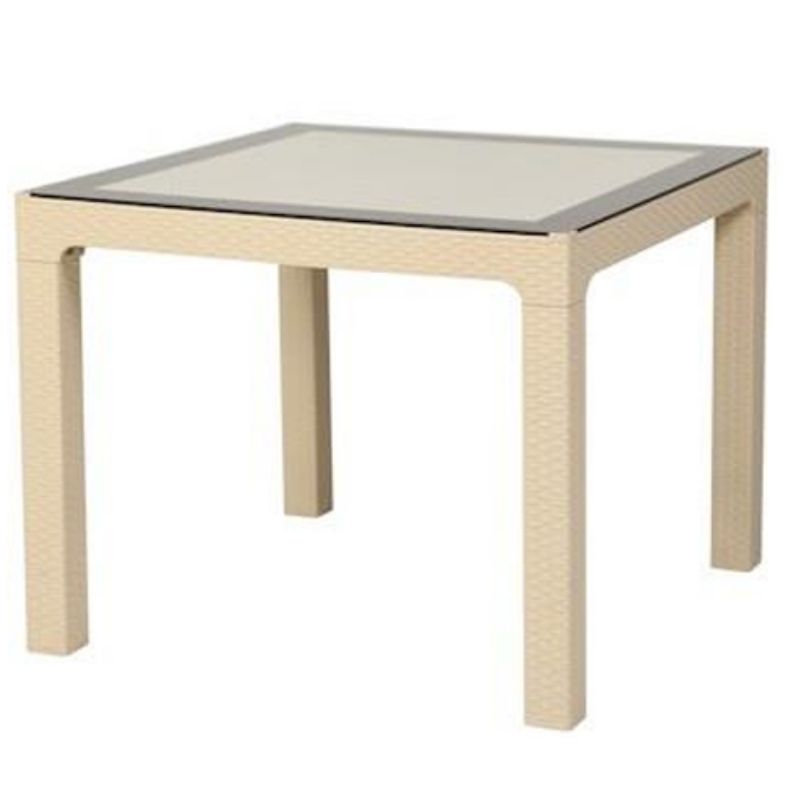 La mesa Arizona 90×90 Wide con vidrio está fabricada en polipropileno con un diseño de madera. La superficie de la mesa es de vidrio templado de 6 mm y es fácil de limpiar. Las patas son desmontables y vienen dentro de la caja. El montaje es sencillo y no requiere herramientas, siendo apta para uso tanto en interiores como en exteriores.