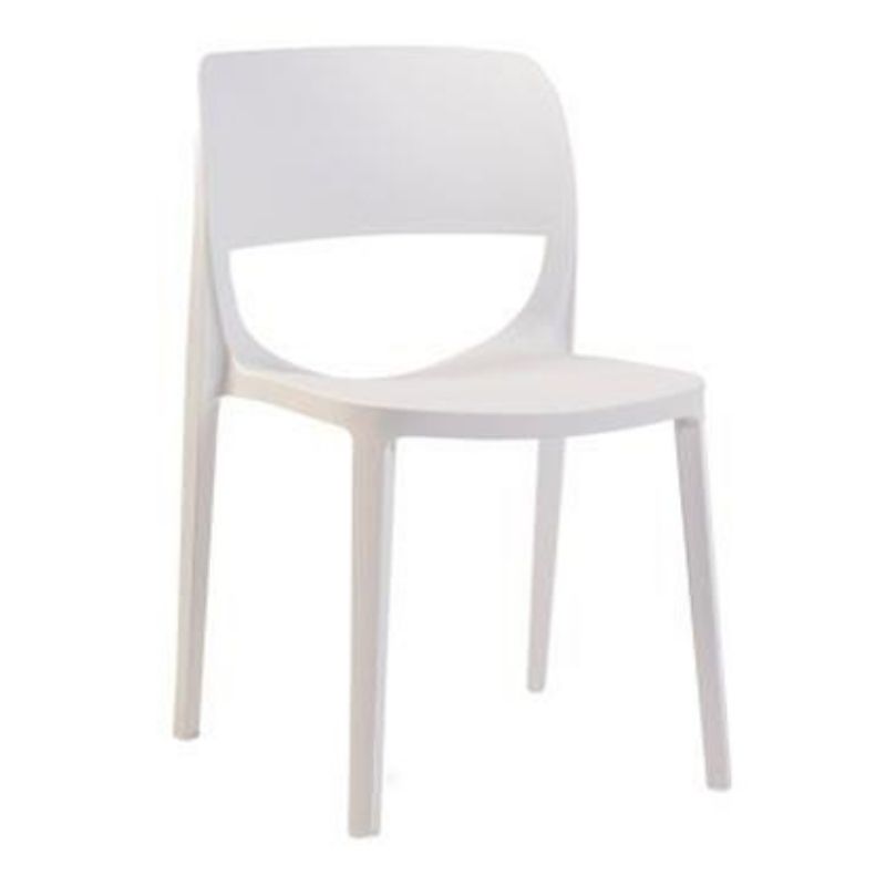 La silla Bella, fabricada con una mezcla de polipropileno y fibra de vidrio mediante un sistema de inyección de gas, es ideal tanto para interiores como exteriores gracias a su diseño distintivo y su capacidad de apilarse.