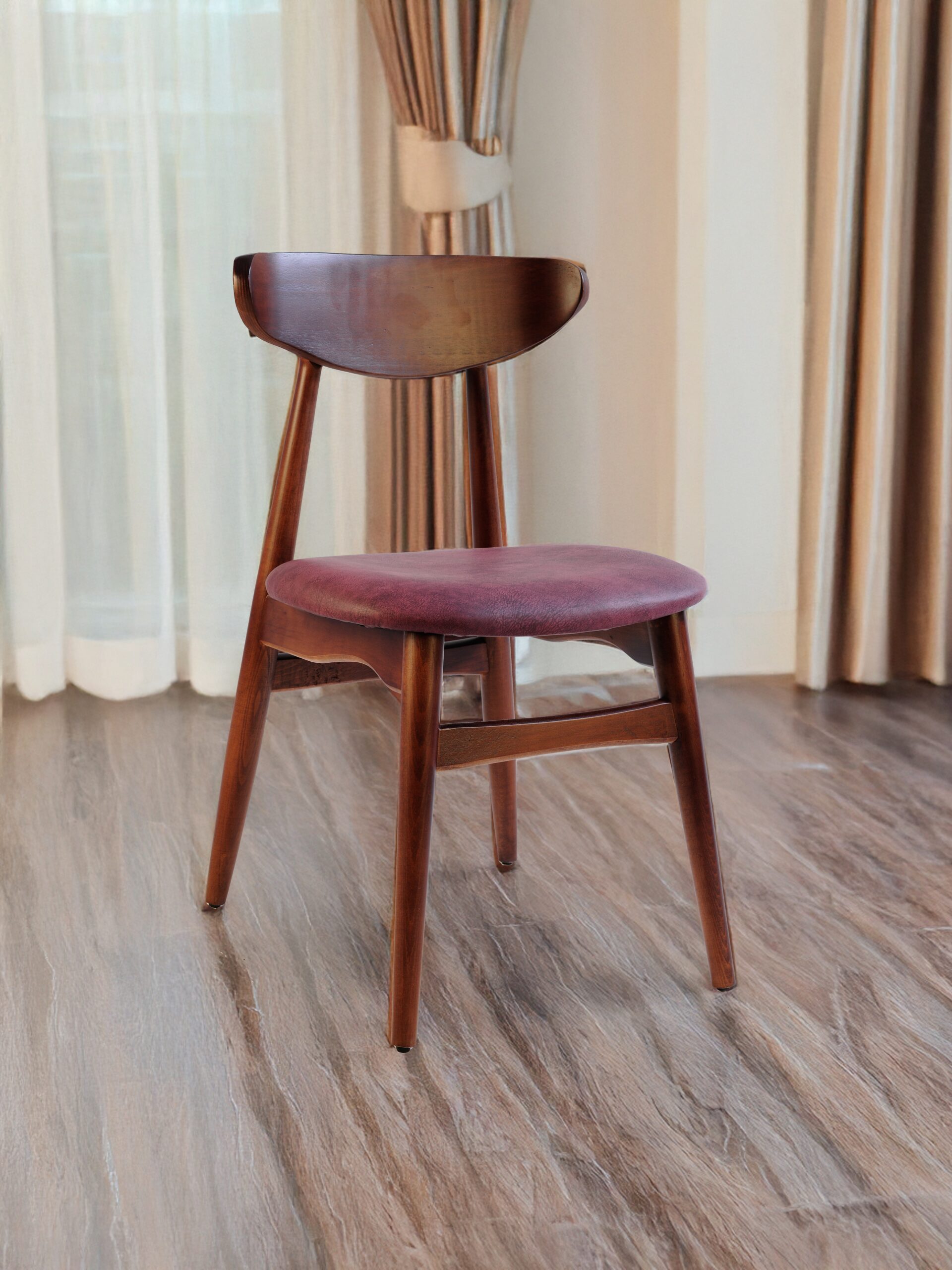 ✅ Fabricado con madera de haya. ✅ Disponible en color nogal o natural. ✅ Opciones variadas de cuero y tela. Dimensiones: Largo: 55 cm | Ancho: 47 cm | Altura total: 81 cm | Altura del asiento: 47 cm ✅ Cantidad mínima de pedido: 100 unidades.
