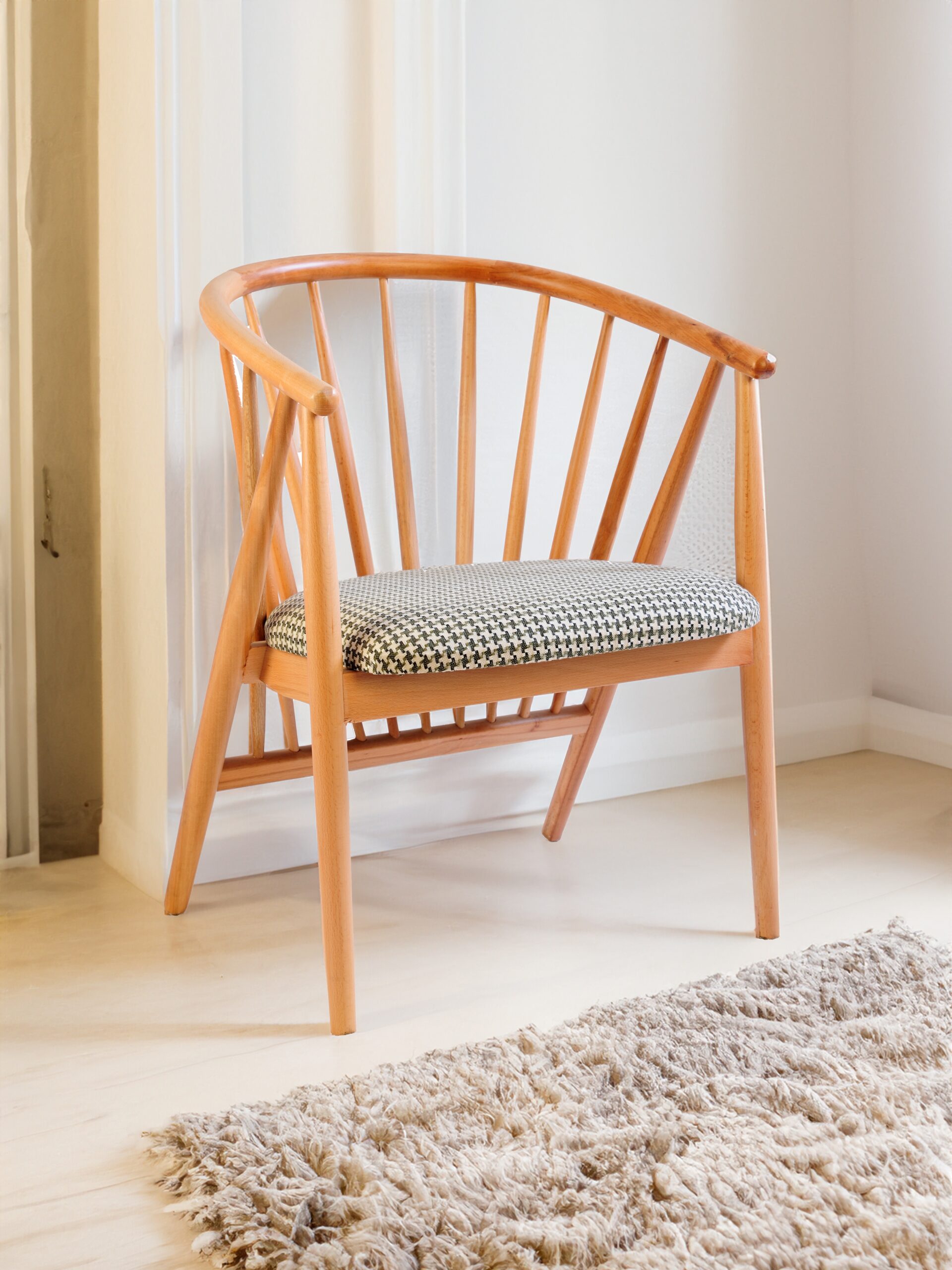 ✅ Fabricado con madera de haya. ✅ Disponible en color nogal o natural. ✅ Opciones variadas de cuero y tela. Dimensiones: Largo: 60 cm | Ancho: 60 cm | Altura total: 78 cm | Altura del asiento: 46 cm ✅ Cantidad mínima de pedido: 100 unidades.