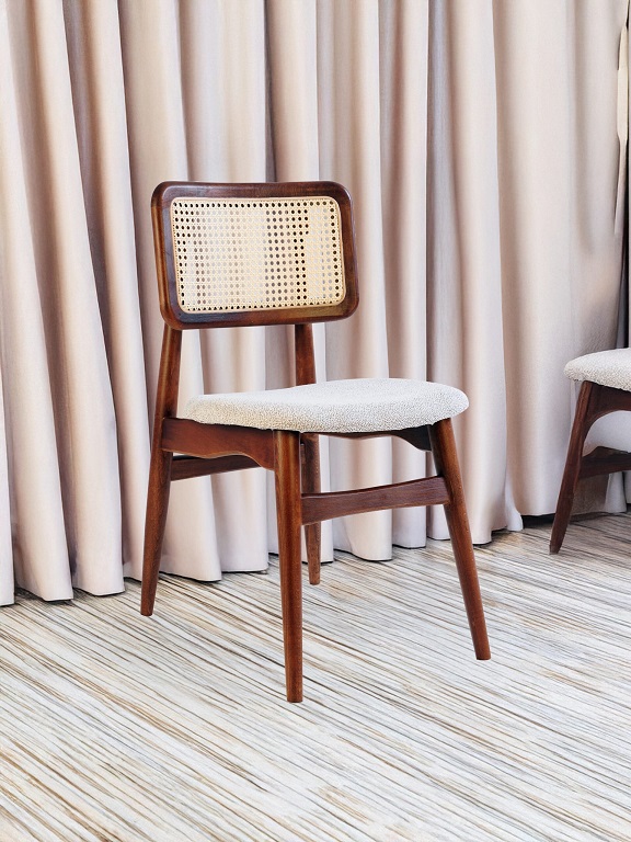 ✅ Fabricado con madera de haya. ✅ Disponible en color nogal o natural. ✅ Opciones variadas de cuero y tela. Dimensiones: Largo: 55 cm | Ancho: 47 cm | Altura total: 81 cm | Altura del asiento: 47 cm ✅ Cantidad mínima de pedido: 100 unidades.