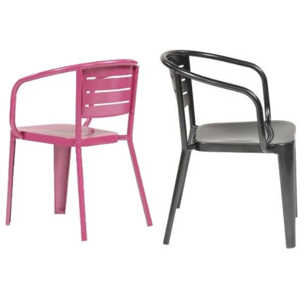 Sillón fabricado con perfil metálico y acabado con pintura en polvo electrostática.